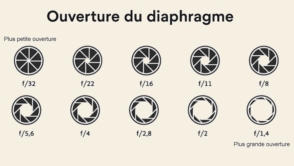 - Une petite ouverture (grand chiffre, ex. f/16) → grande zone nette → tout est clair.